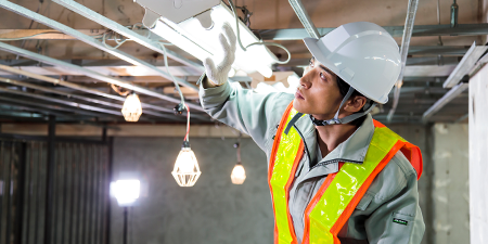 現代社会では必要不可欠な電気エネルギーを安全かつ安定的に供給するための照明設備をはじめとする電気設備です。 一般家庭から、大規模オフィス、工場まで、システムの提案、設計、システム構築工事、そしてメンテナンスまでを一貫して請け負います。